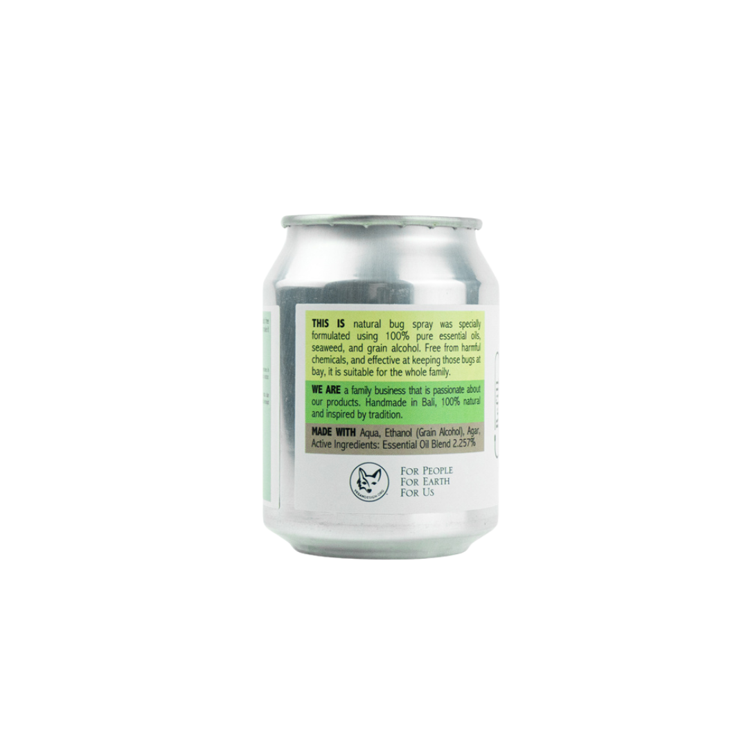A 230ml aluminum refill can for our Be Gone Bug Spray 230ml. The can is thin, recyclable aluminum, designed to be light, low-impact, and easy to dispose of. Pour it into your existing reusable spray bottle and keep going.